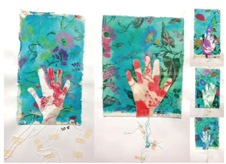 - Place the hand on top of the background – you can fix in place with glue or stitching.
