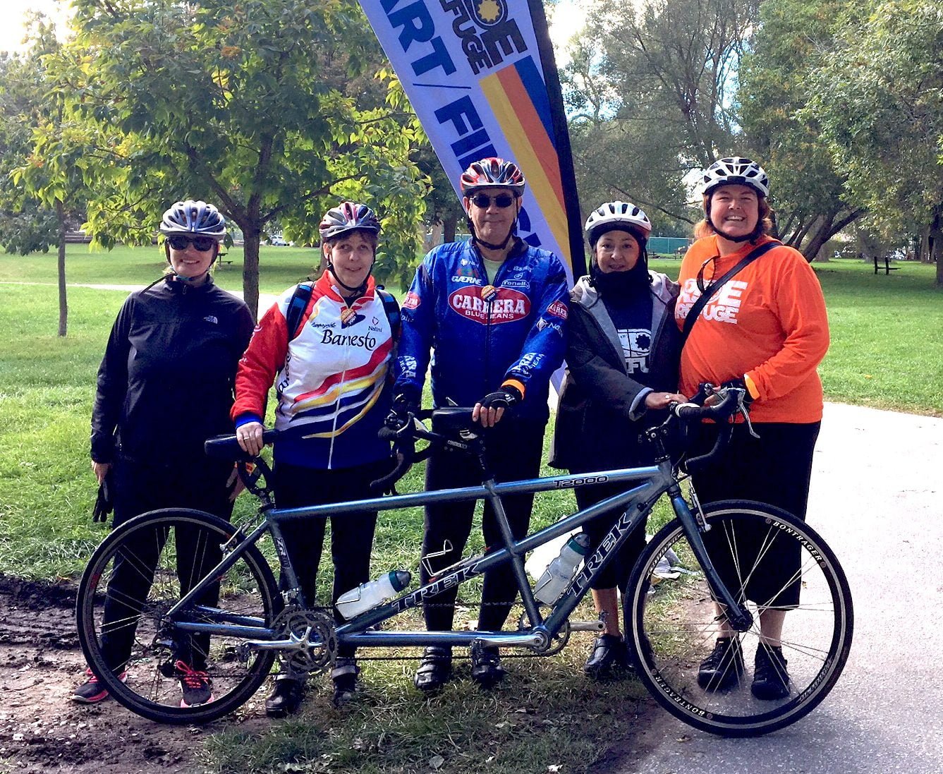 PWRDF Toronto team riders Jeanine Cudmore, Kim Umbach, Ron Gumbs, Jeannethe Lara and Sheilagh McGlynn. October 15, 2018