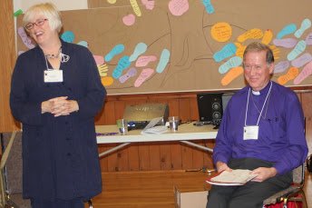 In the afternoon there was a sharing of the Sharing Bread course on food security at Sorrento this past summer. Those of our group who had been to the course shared an activity pictorially crafting why they had attended, what was their best learning and what they took away from that week in the summer. From that we were led into a group activity ourselves of why we had come, what we had learned and what we were taking home from our weekend. We had fun putting our thoughts about this on a huge poster of a road and a tree. There was a sense of positive energy to get going on our ministries at home but before we did that we were privileged to be able to spend an hour with our Primate, Fred. We were reinforced by his understanding, passion, and genuine love for both our church and the world.