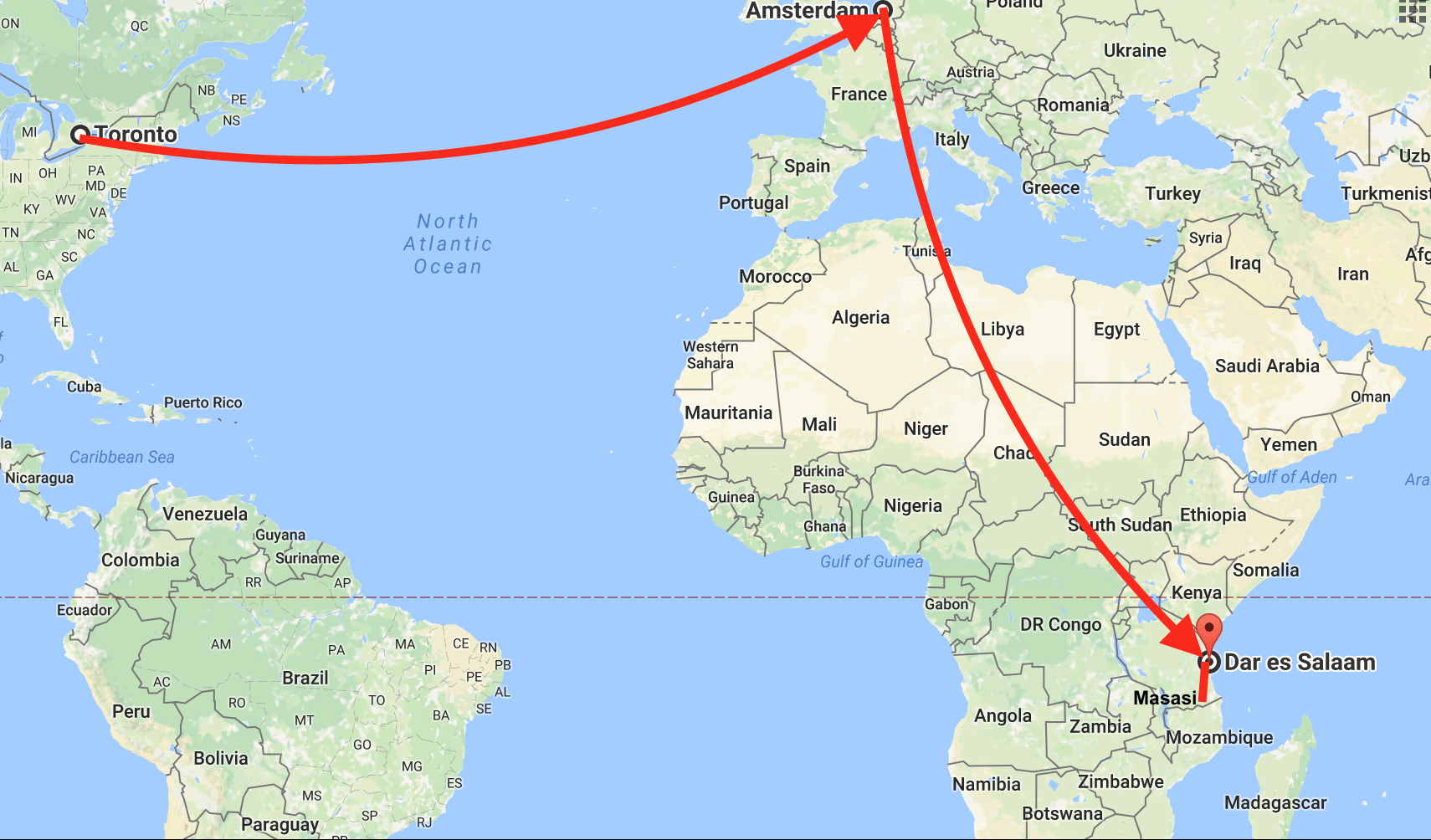 After a long day of travel we finally made it to Tanzania. The overnight flight from Toronto to Amsterdam was long and hot. After a four hour break to stretch our legs in Amsterdam airport we boarded another 10 hour flight on to Dar es Salaam, Tanzania. Unfortunately many of us did not get an adequate night’s sleep on our first flight, so consequently many of our party slept soundly on the second.