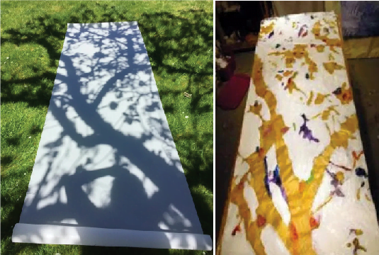 Once campers have traced a shadow they can fill in the patterns with paint. Cut out the pattern and place it on a contrasting colour or make scenery if they did the object shadow. There are some great examples by Lisa Lipsett here: https://creativebynature.org/light-and-shadow/#top