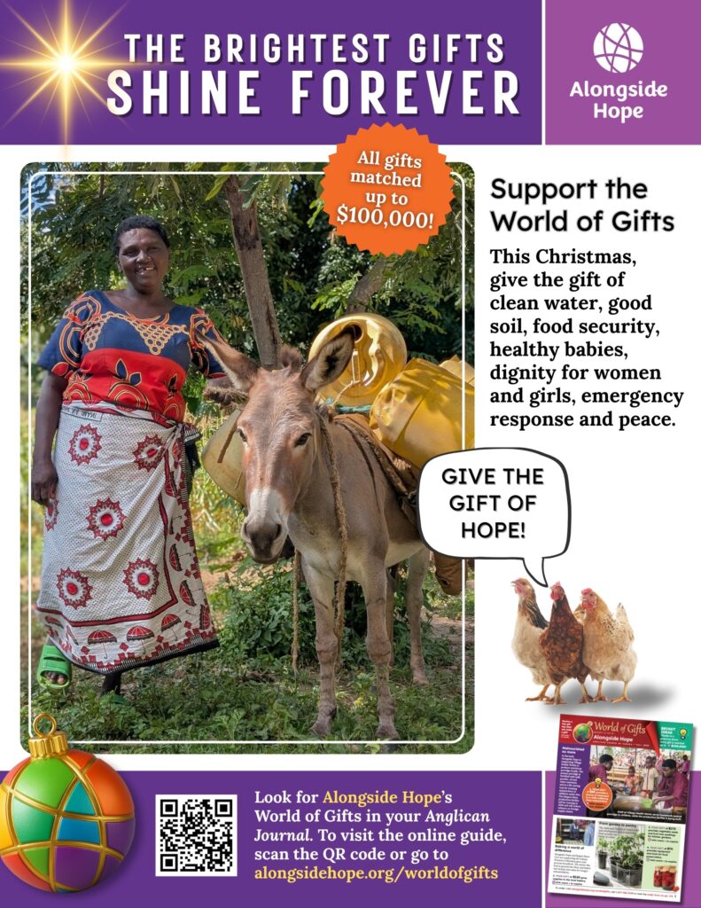 World of Gifts allows you to support our partners by funding items of need for their programs. Please watch the October issue of the Anglican Journal to find the 8-page World of Gifts guide with order form. You can also view or download the guide online then order by mail or telephone by calling 1-877-936-9199 (Monday – Friday 9 a.m. – 5 p.m. EST). For your convenience, you can also browse our gift items at our secure online portal, allowing you to make your gifts any time of day. Post or share our flyer.
